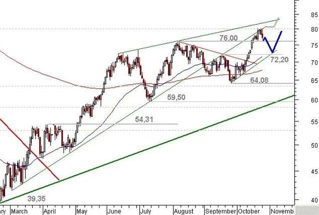 Pokud kotace spadnou pod 76,28 USD, musíme počítat s dalším poklesem na 72,91 – 72,20 USD. Teprve nad hodnotou 80,26 USD by ropa generovala nový procyklický nákupní signál. Takový vývoj v tuto chvíli ale nečekáme.