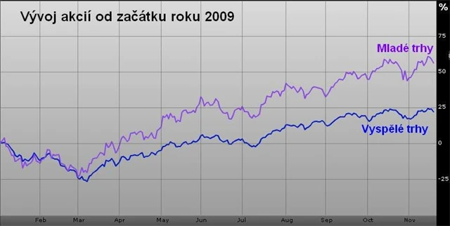 Akciové trhy rostou úctyhodně. Vyspělé trhy rostou od března až o 60 procent, mladé trhy přes 100 procent. Cena ropy je o 150 procent výš než loni v prosinci. Zlato je na historických maximech a ceny domů v Číně rostly v říjnu nejrychleji od srpna 2008.