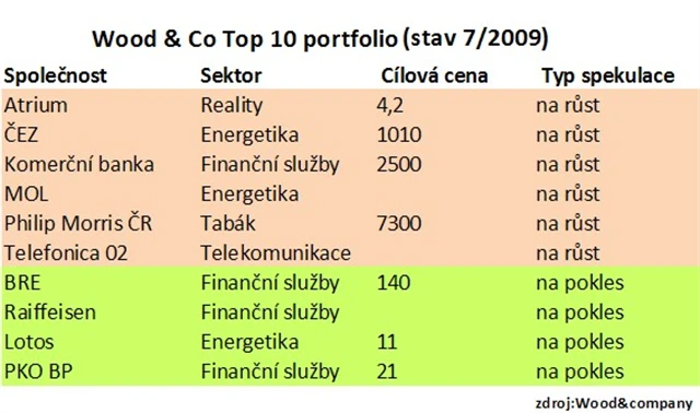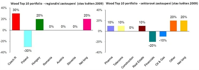 Portfolio WOOD TOP 10 je složené jak z dlouhých pozic (spekulací na růst), ale také z krátkých pozic (spekulací na pokles).