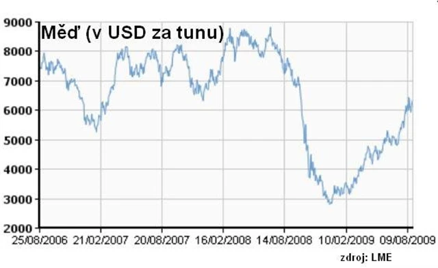 Měď se obchoduje mimo jiné na londýnské komoditní burze The London Metal Exchange, na které obchodníci také uzavírají velmi rozšíření „63 měsíční termínový kontrakt“. Jeho cena se dostala až na 5861 USD za tunu, což už není daleko k historickým maxim, které dosáhla měď v květnu minulého roku.