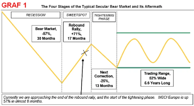 Draaisma věří, že současná růstová nálada může nějakou dobu ještě vydržet a popohnat trhy o dalších zhruba deset procent. Ovšem vládní stimulace ekonomiky bude postupně odeznívat a pochybnosti o růstu v dalších letech srazí trhy dolů. Podle Morgan Stanley (MS) akcie letos oslabí o 5 procent, přičemž mohou být dočasně až 13 procent pod současnými hodnotami.