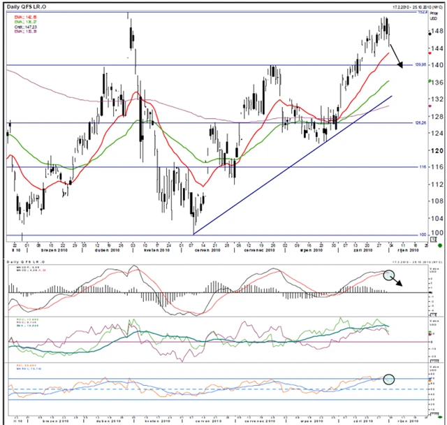 Očekáváme, že FLSR ze současných úrovní oslabí alespoň k červencovému lokálnímu vrcholu okolo 140 USD za akcii.