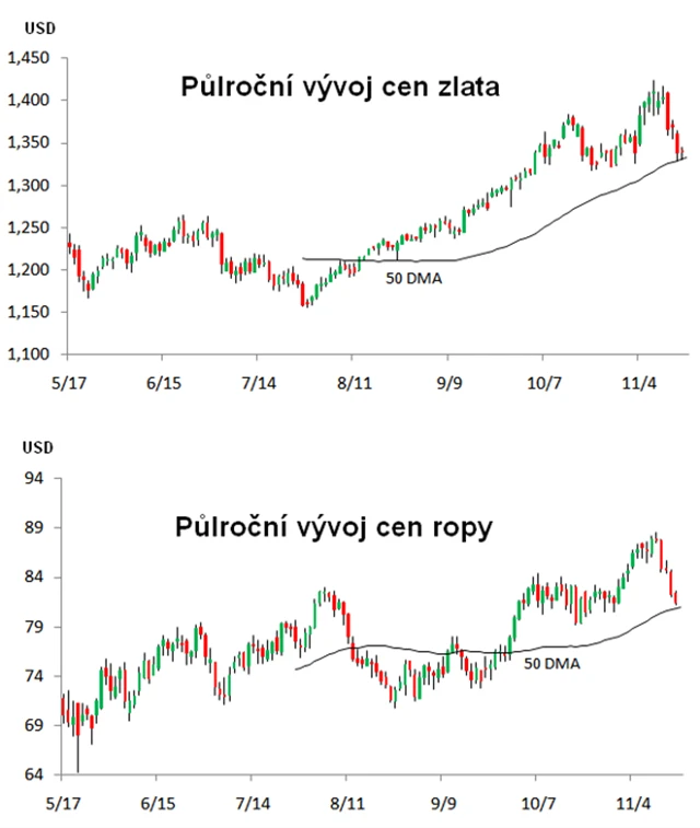 Po prudké korekci z extrémně "překoupených úrovní" našly ceny ropy a zlata podporu na úrovni 50denního klouzavého průměru. Pokud tuto hodnotu udrží, otevírá se jim podle technické analýzy prostor k pokoření nových maxim. V opačném případě nebudou komodity vypadat už tak atraktivně.