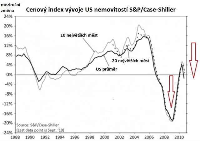 Diskuse nad možným návratem ekonomické recese s dvojitým dnem (double dip) "zaměstnával" finanční média především v první polovině roku 2010. Postupem času však makroekonomické indikátory potvrzovaly ekonomické oživení a "double dip" se stal spíše minoritním názorem. Situace je však jiná na nemovitostním trhu. Ten americký se sice vzpamatoval z velkého propadu v letech 2008 a 2009, ale aktuální vývoj nemovitostního indexu S&P/Case-Shiller naznačuje začátek dalšího propadu.
