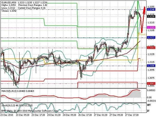 Předpokládaný pohyb pro dnešní den LONG. Případné vstupy do obchodu z hladiny 1.3185 s předpokládaným cílem 1.3275, případně až 1.3325. Proražení hladiny 1.3185 může vést k pohybu s pravděpodobným cílem 1.315 až 1.311.