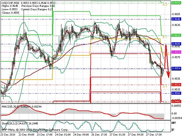 Předpokládaný pohyb pro dnešní den SHORT. Případné vstupy do obchodu z hladiny 0.96 s předpokládaným cílem 0.954, případně až 0.95. Proražení hladiny 0.96 může vést k pohybu s pravděpodobným cílem 0.965 až 0.9695.