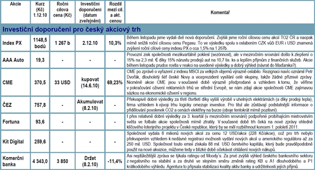 ČS: Prosincová akciová strategie pro české akcie (3. 12. 2010)
