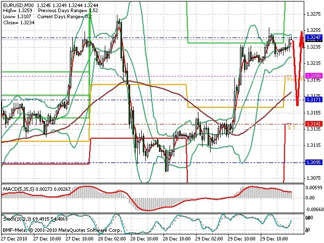Předpokládaný pohyb pro dnešní den LONG. Případné vstupy do obchodu z hladiny 1.317 s předpokládaným cílem 1.3275, případně až 1.3325. Proražení hladiny 1.317 může vést k pohybu s pravděpodobným cílem 1.3125 až 1.308.