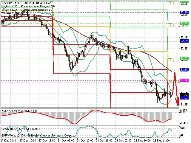 Předpokládaný pohyb pro dnešní den SHORT. Případné vstupy do obchodu z hladiny 81.85 s předpokládaným cílem 81.25, případně až 80.9. Proražení hladiny 81.85 může vést k pohybu s pravděpodobným cílem 82.05 až 82.3.