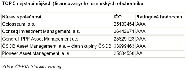 Zapátrali jsme v databázích agentury ČEKIA a představujeme TOP 5 nejstabilnějších (licencovaných) tuzemských obchodníků s cennými papíry podle ČEKIA Stability Ratingu.