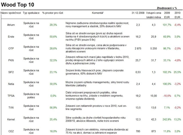 V rámci bankovního sektoru jsme optimističtí, hlavně co se tyká Erste Bank a maďarského OTP. I pres zřejmá rizika obě banky disponují kvalitní retailovou sítí a mají v roce 2010 potenciál pozitivně překvapit.