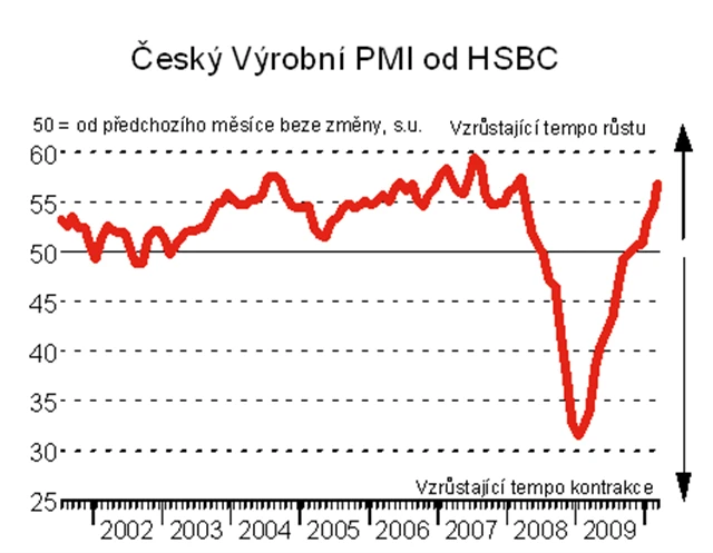 Březnové údaje PMI pro český výrobní sektor, zpracované pro HSBC společností Markit, zdůraznily pevné oživení obchodních podmínek v prvním čtvrtletí roku 2010. Hlavní Výrobní HSBC PMI pro Českou republiku dosáhl hodnotou 56,8 dvouletého maxima.