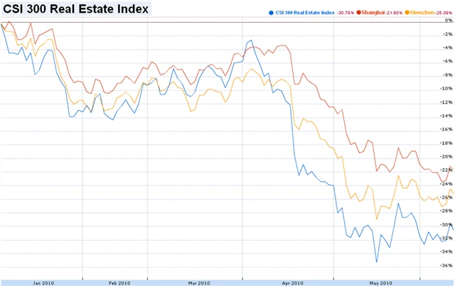 "Finanční balíčky" v řádech miliard jüanů byly asi největší chybou čínské vlády v současné globální krizi. Ceny akcií realitního trhu s několika měsíčním předstihem predikují a předcházejí reálnému vývoji cen na trhu. Čína tedy může očekávat reálný pád cen nemovitostí o zhruba tento řád.