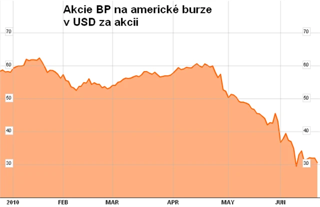 Je to nepříjemné, ale je to tak – akciím trvá obyčejně celé měsíce, než významněji posílí, ale jakmile se objeví negativní nálada, investoři je vyprodávají a ceny letí dolů. Akcie BP oslabily na polovinu své hodnoty za měsíc a půl. Pro představu – naposledy se obchodovaly pod 30 dolary v roce 1996, přežily tedy dokonce i finanční krizi na lepší úrovni, než tu "svoji" současnou.
