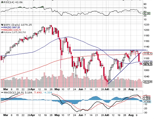 Ve středu cena prorazila obě zmiňované úrovně a v pátek index uzavřel na ceně 1 079 bodů. Nyní je nejbližší support na 1 060, což byla nejnižší cena v červenci.