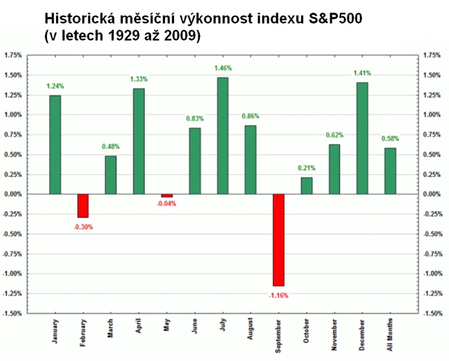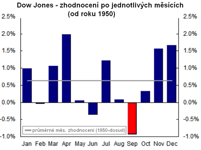 Průměrná historická ztráta je na indexu Dow Jones na úrovni 1 procenta, index S&P 500 v září obvykle ztratí 0,7 procenta. Když se však počítá statistika od roku 1929, tak tento index v září "trpí" ještě víc (1,16 procenta).