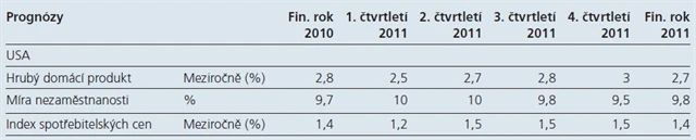 Saxo Bank očekává, že se v roce 2011 růst americké ekonomiky dále zrychlí a že následující rok uzavře růstem HDP o 2,7 % s potenciálem dalšího posilování, ovšem trvalé udržení tohoto tempa hospodářského oživení může být ohroženo problematickým trhem práce, deflačními tlaky a oddlužováním domácností.
