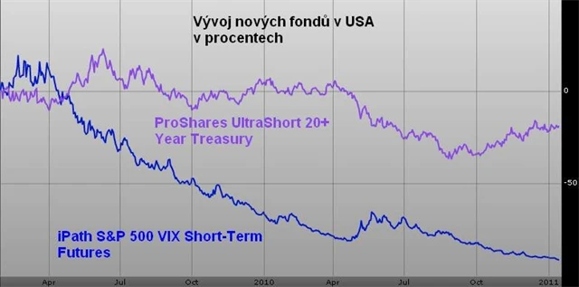 Mezi nejhorší patří investice do akciového fondu iPath S&P 500 VIX Short-Term Futures, fondu, který sází na nejvyšší volatilitu. Fond byl založen v době, kdy volatilita na trzích dosahovala historických maxim, ale od akciového dna z jara 2009 volatilita konstantě klesá. Fond tak ztratil až 90 procent své hodnoty.