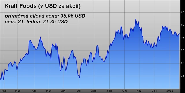 Hlavní Warrenova potravinářská sázka. Zajímavá je dividenda (3,8% výnos) a stále i ocenění (P/E zhruba 14). Po "drahé" akvizici firmy Cadbury Buffett snížil svůj podíl ve firmě. Ale věří, že by se akcie mohly vrátit nad 35 dolarů.