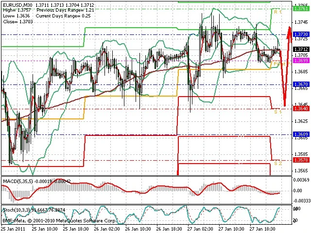 Předpokládaný pohyb pro dnešní den LONG. Případné vstupy do obchodu z hladiny 1.3645 s předpokládaným cílem 1.3755, případně až 1.3805. Proražení hladiny 1.3635 může vést k pohybu s pravděpodobným cílem 1.3575 až 1.3525.