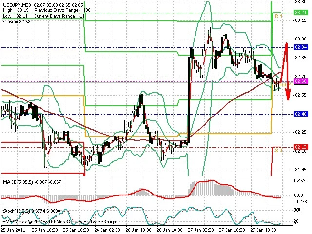 Předpokládaný pohyb pro dnešní den SHORT. Případné vstupy do obchodu z hladiny 82.95 s předpokládaným cílem 82.4, případně až 82.1. Proražení hladiny 83 může vést k pohybu s pravděpodobným cílem 83.2 až 83.5.