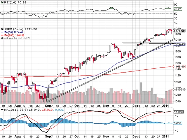 První obchodní den nového roku začal velmi pozitivně. Velká většina prvních obchodních dní končí v zeleném. V pondělí index S&P 500 uzavřel na hodnotě 1271,90 a do pátku se prakticky nic nedělo. Uzavírací cena na konci týdne byla 1271,50 bodu. Situace zůstává stejná jako v minulém týdnu.
