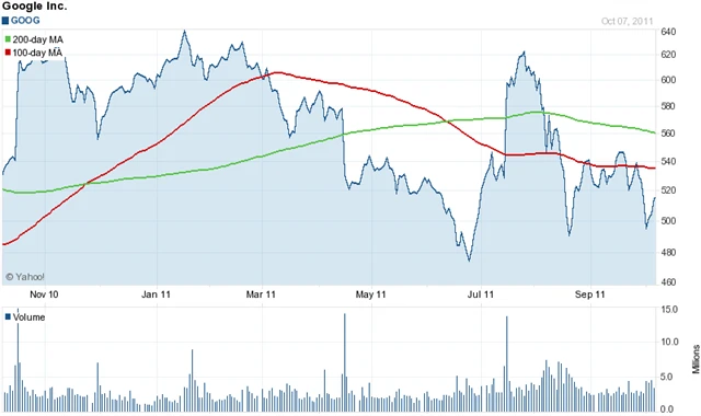 Vzpomenete si ještě, co se stalo s akciemi Googlu po skvělých výsledcích za druhý kvartál? Akcie vystřelily "ke hvězdám", za pár týdnu připsaly přes dvacet procent. V současnosti se pohybují výrazně pod letošními maximy a důležitými klouzavými průměry. Google svá čísla za třetí čtvrtletí zveřejní už ve čtvrtek.