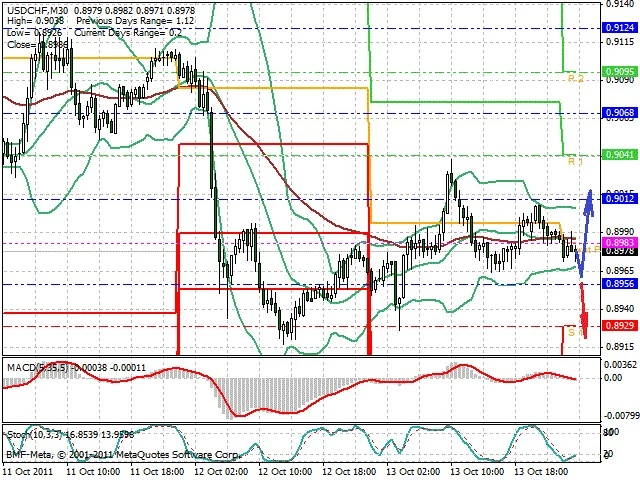 Předpokládaný pohyb pro dnešní den LONG. Případné vstupy do obchodu z hladiny 0.896 s předpokládaným cílem 0.9015, případně až 0.9055. Proražení hladiny 0.895 může vést k pohybu s pravděpodobným cílem 0.892 až 0.889.