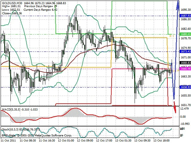 Předpokládaný pohyb pro dnešní den LONG. Případné vstupy do obchodu z hladiny 1 654 s předpokládaným cílem 1 692, případně až 1 715. Proražení hladiny 1 654 může vést k pohybu s pravděpodobným cílem 1 640 až 1 630.