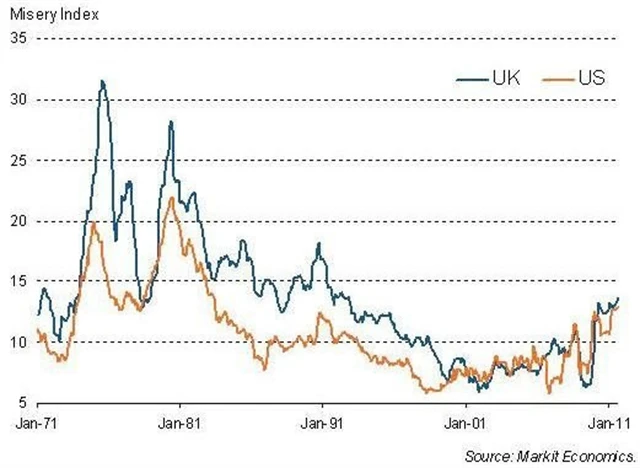 Vyšší než očekávaná inflace v Británii i Spojených státech prohloubila problémy chudých v těchto zemích. Index bídy, který sčítá míry spotřebitelské inflace a nezaměstnanosti, se kvůli tomu v obou zemích dostal na mnohaletá maxima.