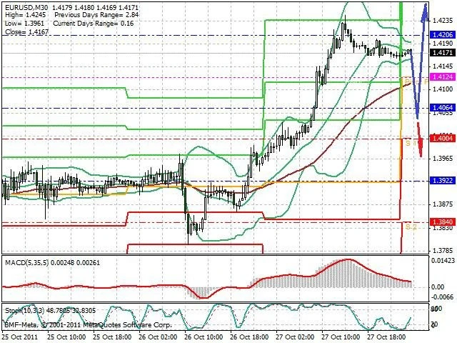 Předpokládaný pohyb pro dnešní den LONG. Případné vstupy do obchodu z hladiny 1.403 s předpokládaným cílem 1.426, případně až 1.4325. Proražení hladiny 1.403 může vést k pohybu s pravděpodobným cílem 1.3975 až 1.395.