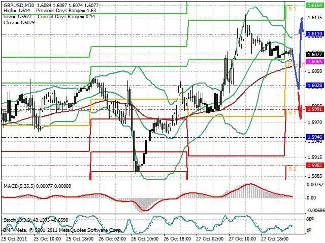 Předpokládaný pohyb pro dnešní den LONG. Případné vstupy do obchodu z hladiny 1.6025 s předpokládaným cílem 1.613, případně až 1.6205. Proražení hladiny 1.6025 může vést k pohybu s pravděpodobným cílem 1.5985 až 1.595.