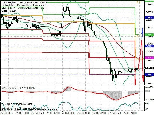 Předpokládaný pohyb pro dnešní den SHORT. Případné vstupy do obchodu z hladiny 0.873 s předpokládaným cílem 0.8565, případně až 0.8515. Proražení hladiny 0.873 může vést k pohybu s pravděpodobným cílem 0.877 až 0.88.