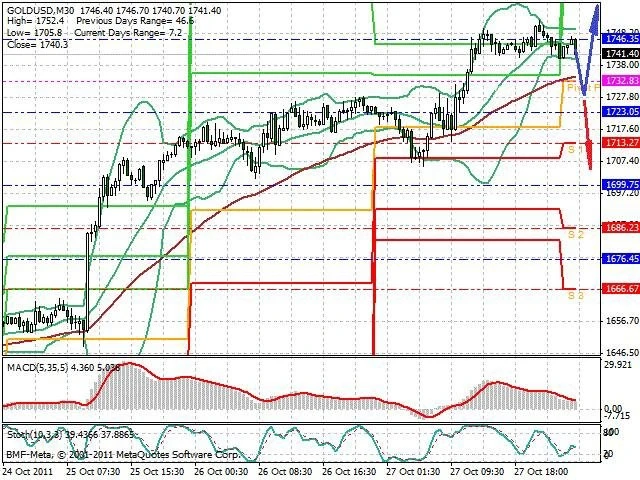 Předpokládaný pohyb pro dnešní den LONG. Případné vstupy do obchodu z hladiny 1 728 s předpokládaným cílem 1 752, případně až 1 765. Proražení hladiny 1 728 může vést k pohybu s pravděpodobným cílem 1 705 až 1 695.