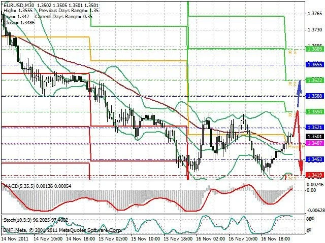 Předpokládaný pohyb pro dnešní den SHORT. Případné vstupy do obchodu z hladiny 1.3555 s předpokládaným cílem 1.3425, případně až 1.338. Proražení hladiny 1.3555 může vést k pohybu s pravděpodobným cílem 1.36 až 1.364.