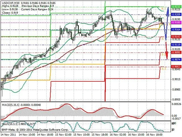 Předpokládaný pohyb pro dnešní den LONG. Případné vstupy do obchodu z hladiny 0.9135 s předpokládaným cílem 0.923, případně až 0.9255. Proražení hladiny 0.9135 může vést k pohybu s pravděpodobným cílem 0.9085 až 0.903.
