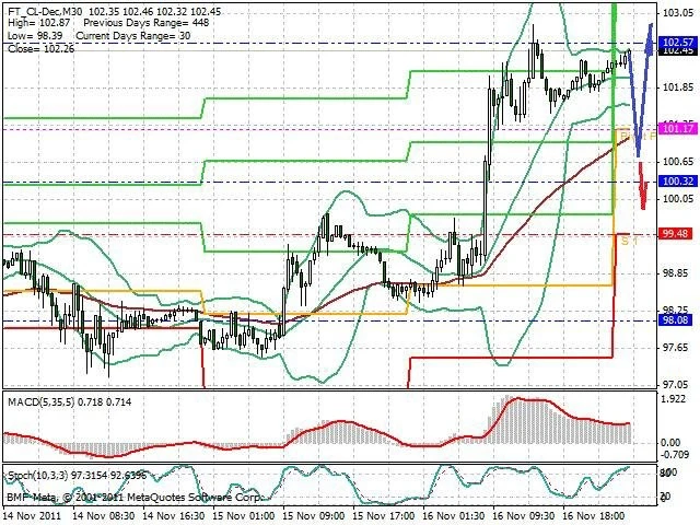 Předpokládaný pohyb pro dnešní den LONG. Případné vstupy do obchodu z hladiny 100.75 s předpokládaným cílem 102.85 případně až 104.5. Proražení hladiny 100.75 může vést k pohybu s pravděpodobným cílem 99.75 až 98.4.