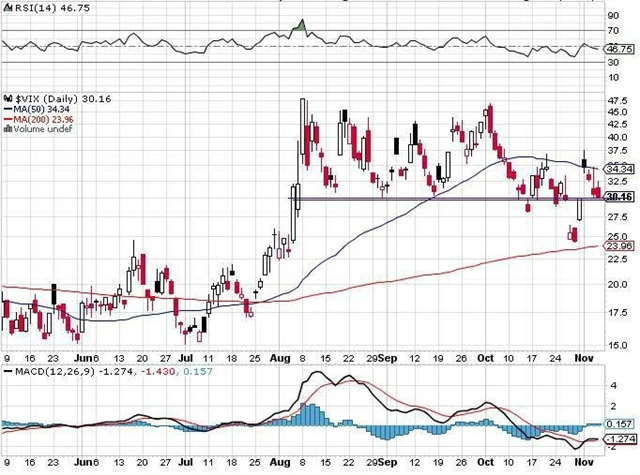 Index volatility VIX se v pondělí prudce vrátil přesně na hladinu 30 a zbytek týdne zůstal nad ní. Pro potvrzení střednědobého nákupního signálu pro index S&P 500 je nutné, aby VIX uzavřel pod 30.