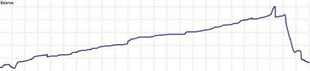 Přijímání malých zisků a neuzavírání ztrát je vždy jen dočasný úspěch s netrpělivě čekajícím kostlivcem ve skříni, jak dokládá následující obrázek s vývojem na takto obchodovaném účtu.