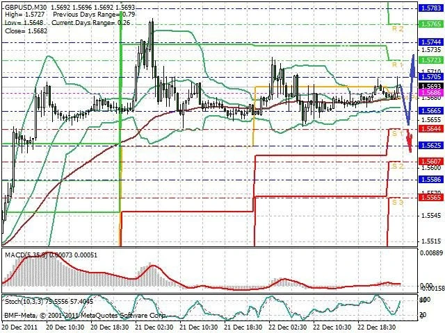 Předpokládaný pohyb pro dnešní den LONG. Případné vstupy do obchodu z hladiny 1.565 s předpokládaným cílem 1.5725, případně až 1.575. Proražení hladiny 1.565 může vést k pohybu s pravděpodobným cílem 1.562 až 1.5565.