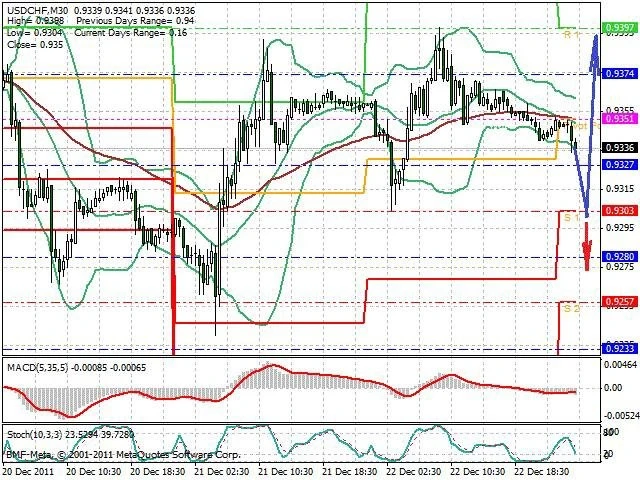Předpokládaný pohyb pro dnešní den LONG. Případné vstupy do obchodu z hladiny 0.93 s předpokládaným cílem 0.9395, případně až 0.942. Proražení hladiny 0.93 může vést k pohybu s pravděpodobným cílem 0.9275 až 0.924.