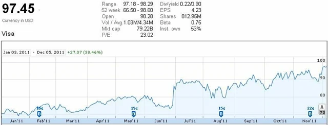 Akcie Visy jsou letos mezi nejlepšími "velkými" tituly, posílily o téměř 40 %. Firmě věří i Warren Buffett, který ve třetím čtvrtletí do společnosti významně investoval.