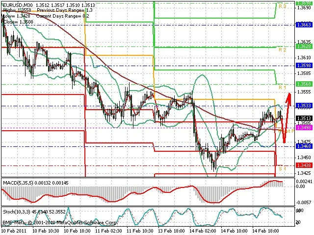 Předpokládaný pohyb pro dnešní den LONG. Případné vstupy do obchodu z hladiny 1.3475 s předpokládaným cílem 1.355, případně až 1.359. Proražení hladiny 1.3465 může vést k pohybu s pravděpodobným cílem 1.3425 až 1.339.