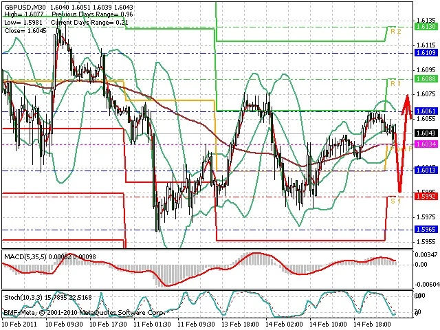 Předpokládaný pohyb pro dnešní den LONG. Případné vstupy do obchodu z hladiny 1.5995 s předpokládaným cílem 1.608, případně až 1.6125. Proražení hladiny 1.5985 může vést k pohybu s pravděpodobným cílem 1.594 až 1.589.