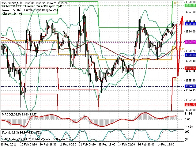 Předpokládaný pohyb pro dnešní den LONG. Případné vstupy do obchodu z hladiny 1 356 s předpokládaným cílem 1 366, případně až 1 375. Proražení hladiny 1 356 může vést k pohybu s pravděpodobným cílem 1 350 až 1 345.