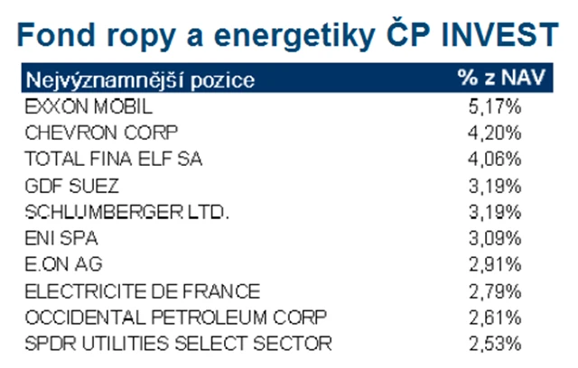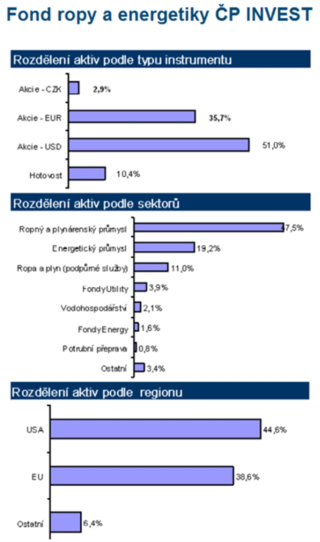 MP: Náš fond je určen všem, kteří akceptují investiční horizont minimálně 5 let, což se ostatně doporučuje obecně při všech investicích do akcií. Fond investuje do akcií ze sektorů, které jsou citlivé na změny cen ropy, zemního plynu, elektřiny či uhlí. Výhodou je měnové zajištění do českých korun.