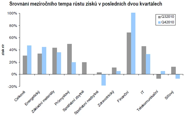 Společnosti z amerického akciového indexu S&P 500 celkově opět překonávají očekávání trhu, a to především díky snižování nákladů, silným exportům, oživení hospodářství a souvisejícímu nárůstu spotřebitelských výdajů. Zisky na akcii zatím v průměru meziročně rostou o výrazných 42 % a překonávají odhady trhu o asi 7 %.