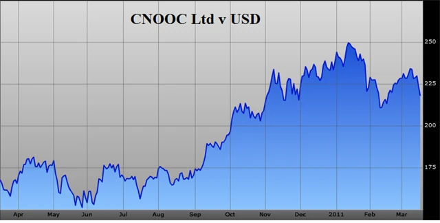 Ceny barelu surové ropy letí nad 100 USD, takže korekce u China National Offshore Oil Corporation, která byla pozorována v prvních dvou měsících roku 2011 se jeví jako dobrá nákupní příležitost.