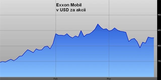Krátkodobý zájem: Vrostl o 12,5 procenta. I přes zvyšující se cenu ropy, která vyhnala cenu akcií Exxonu o 10 procent, titul ze svých únorových maxim ztrácí stále přes 1,5 procenta.
