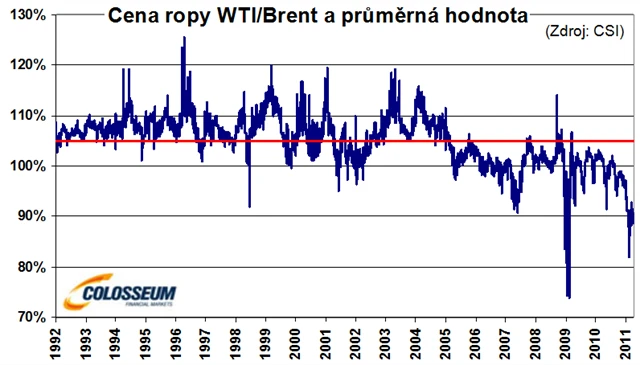 Je zřejmé, že průměrně byla cena ropy WTI o 5 % dražší než Brent. V průběhu prvního kvartálu nicméně cena evropské ropy výrazně převyšovala cenu americké. WTI byla v jednom okamžiku až o 18 % levnější. Příčinou tohoto stavu byly zvyšující se zásoby ve Spojených státech (obzvláště v Cushingu) a problémy v arabském světě.